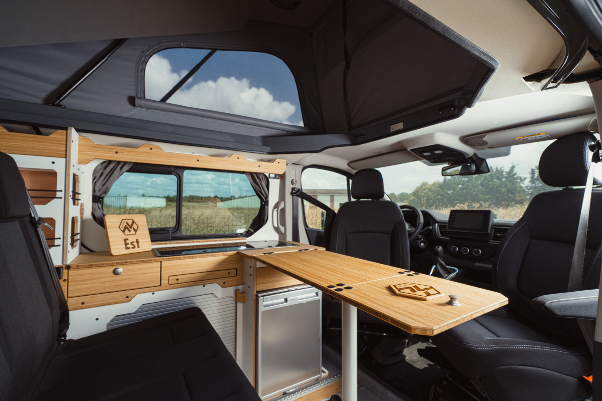 Le kit EST anciennement nommé « EAST » est l’aménagement classique du campervan. Il propose la cuisine sous la fenêtre latérale comme dans la grande tradition des vans aménagés !