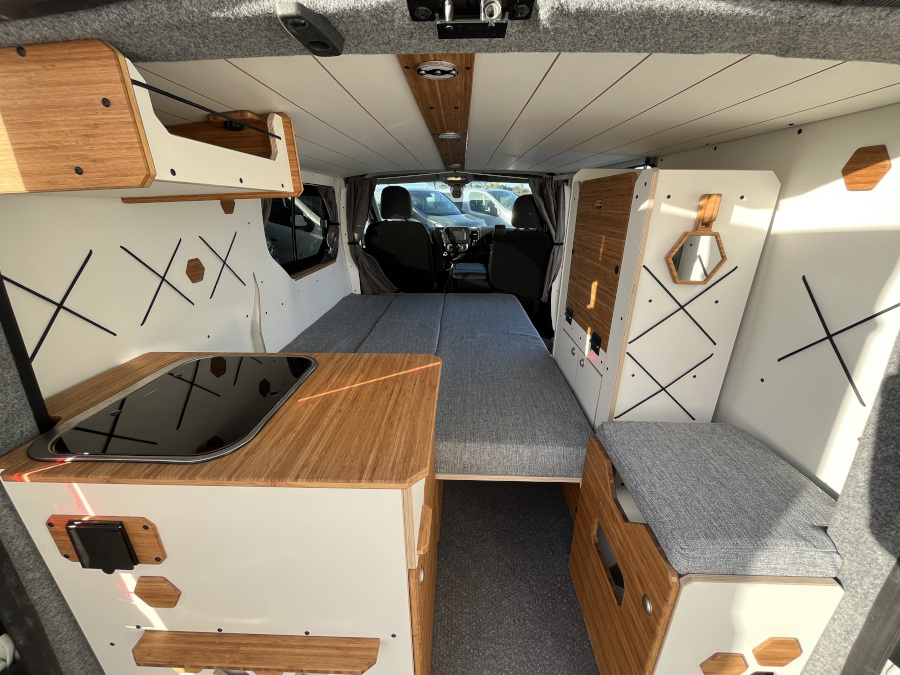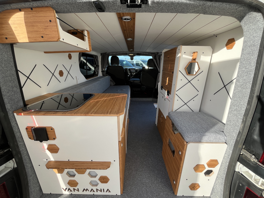 Découvrez notre Opel Vivaro d’occasion équipé du Kit Nord VanMania. Un aménagement amovible et malin, pensé pour l’aventure en toute simplicité. Il comprend un lit 2 places confortable, une cuisine utilisable depuis l’intérieur ou l’extérieur, de nombreux rangements, une table pliante, ainsi que diverses options de confort (chauffage, isolation…). Polyvalent, modulable et efficace, c’est le compagnon idéal pour voyager léger, en solo ou à deux.