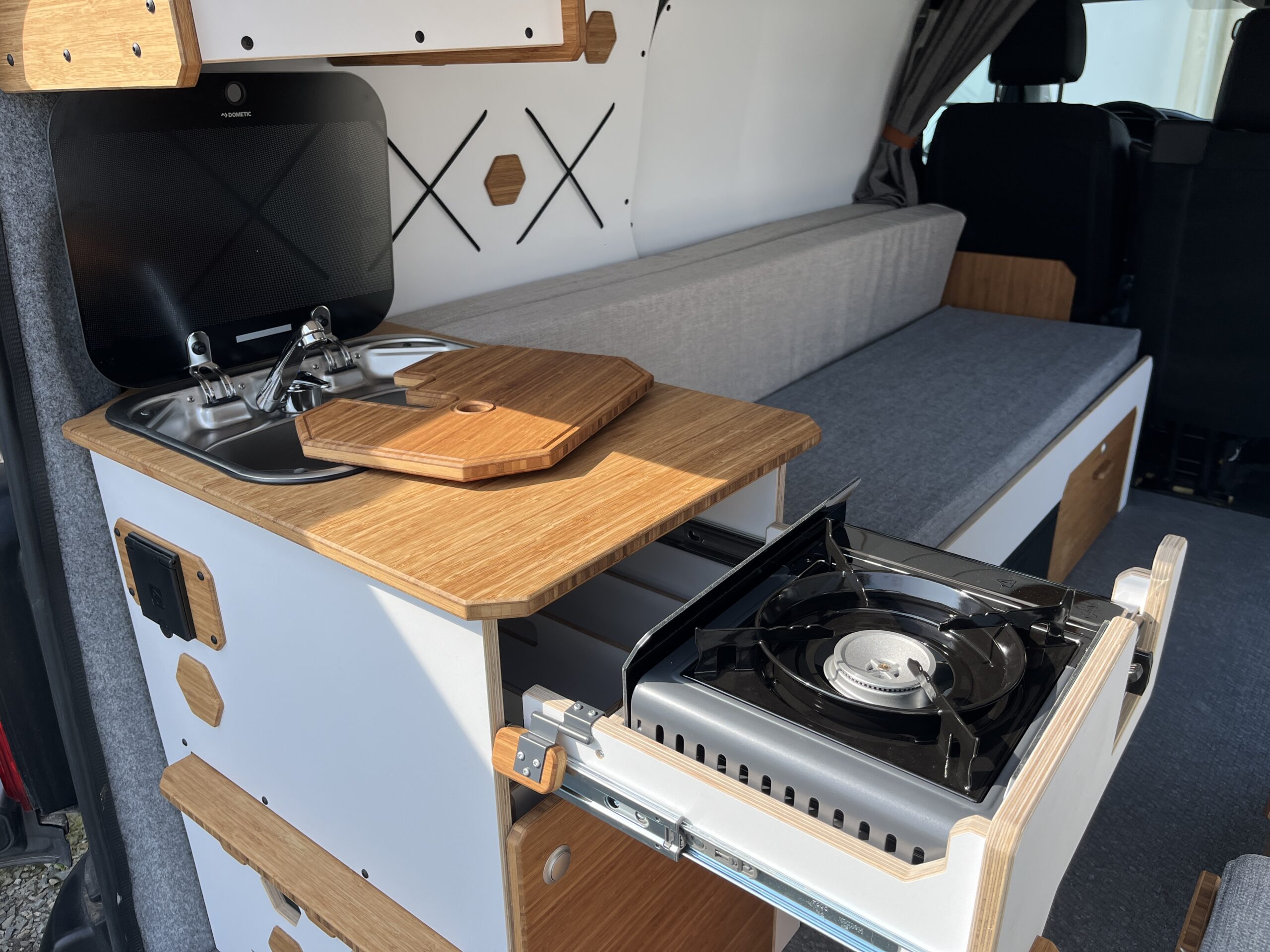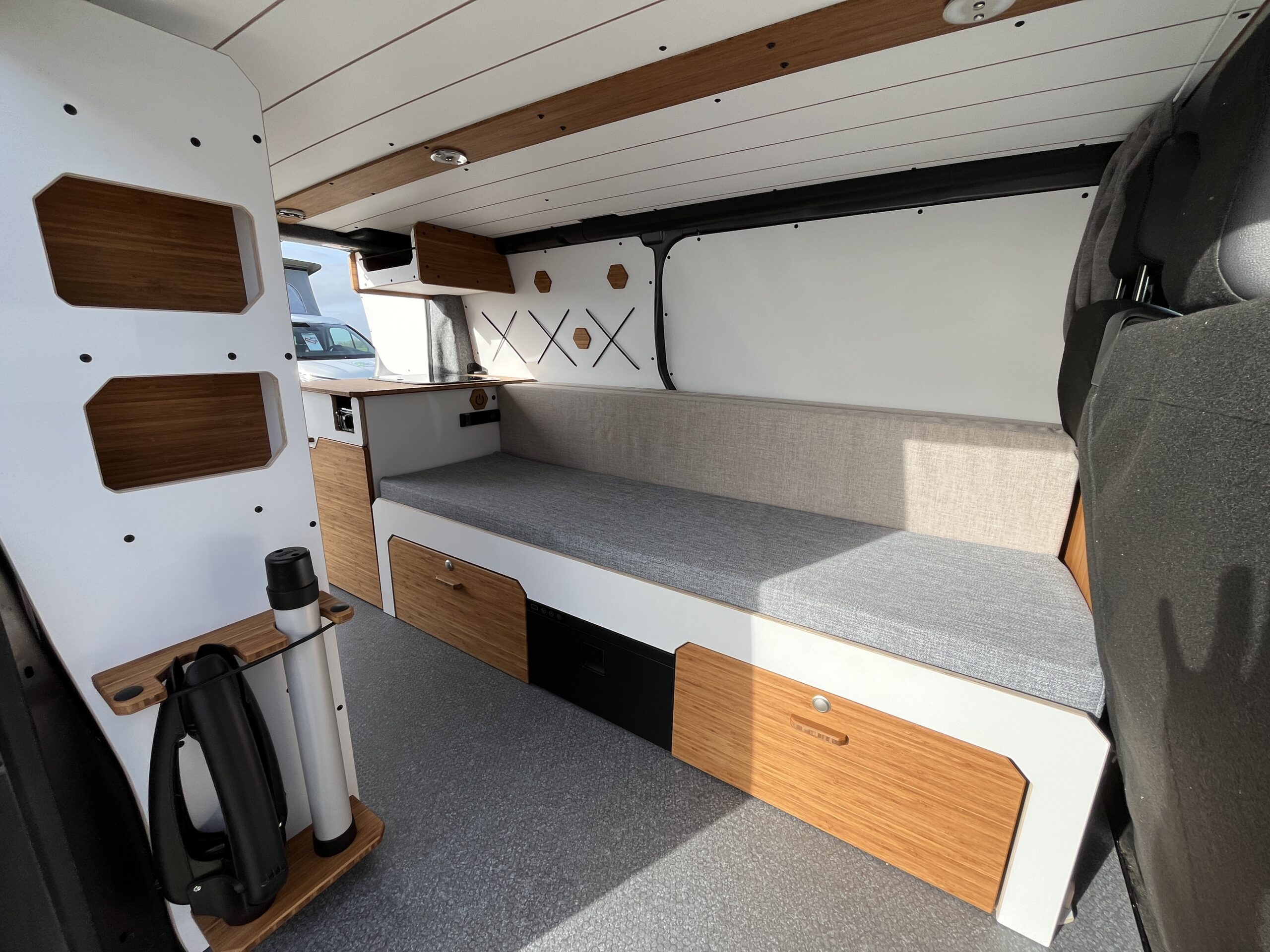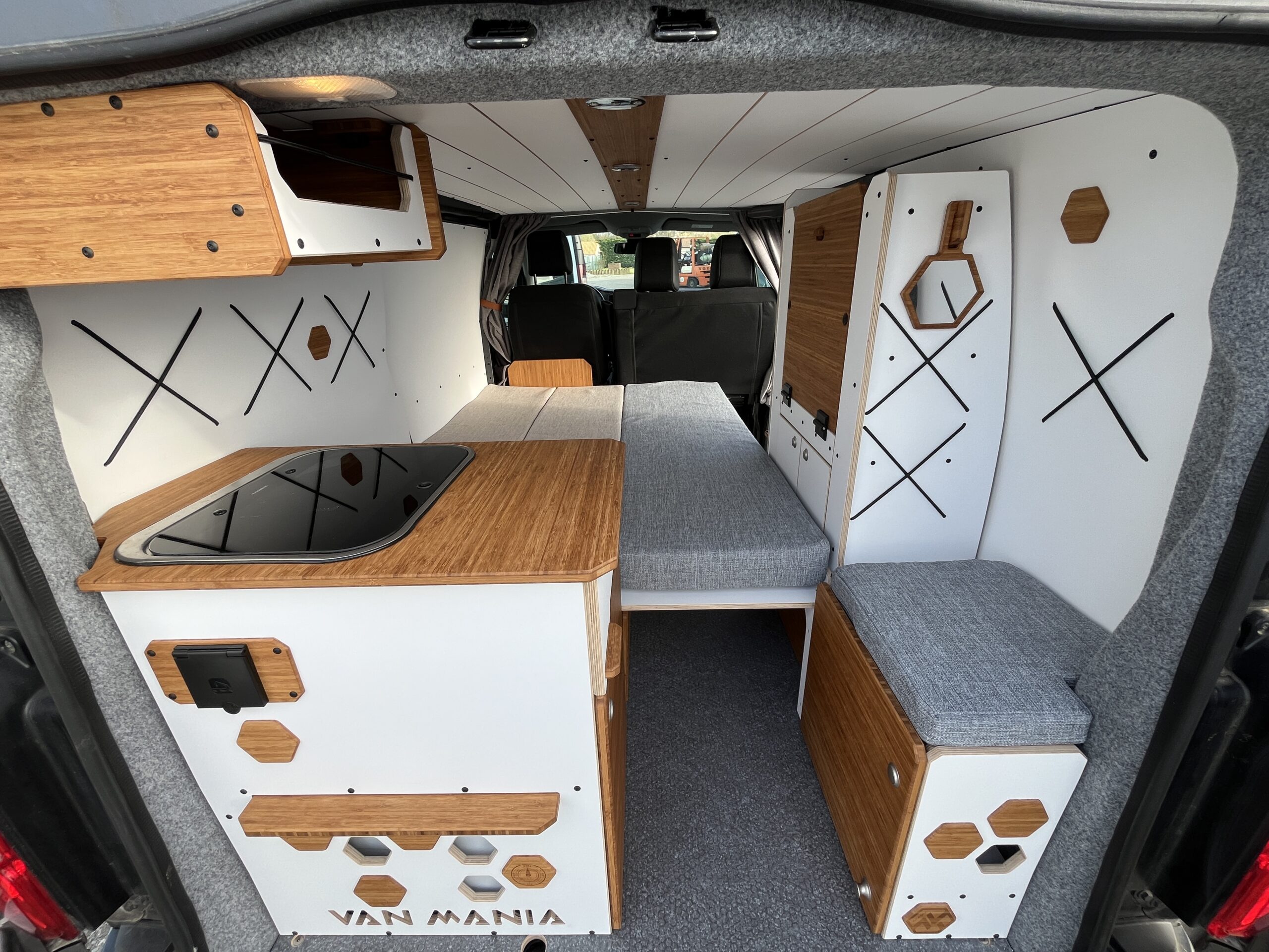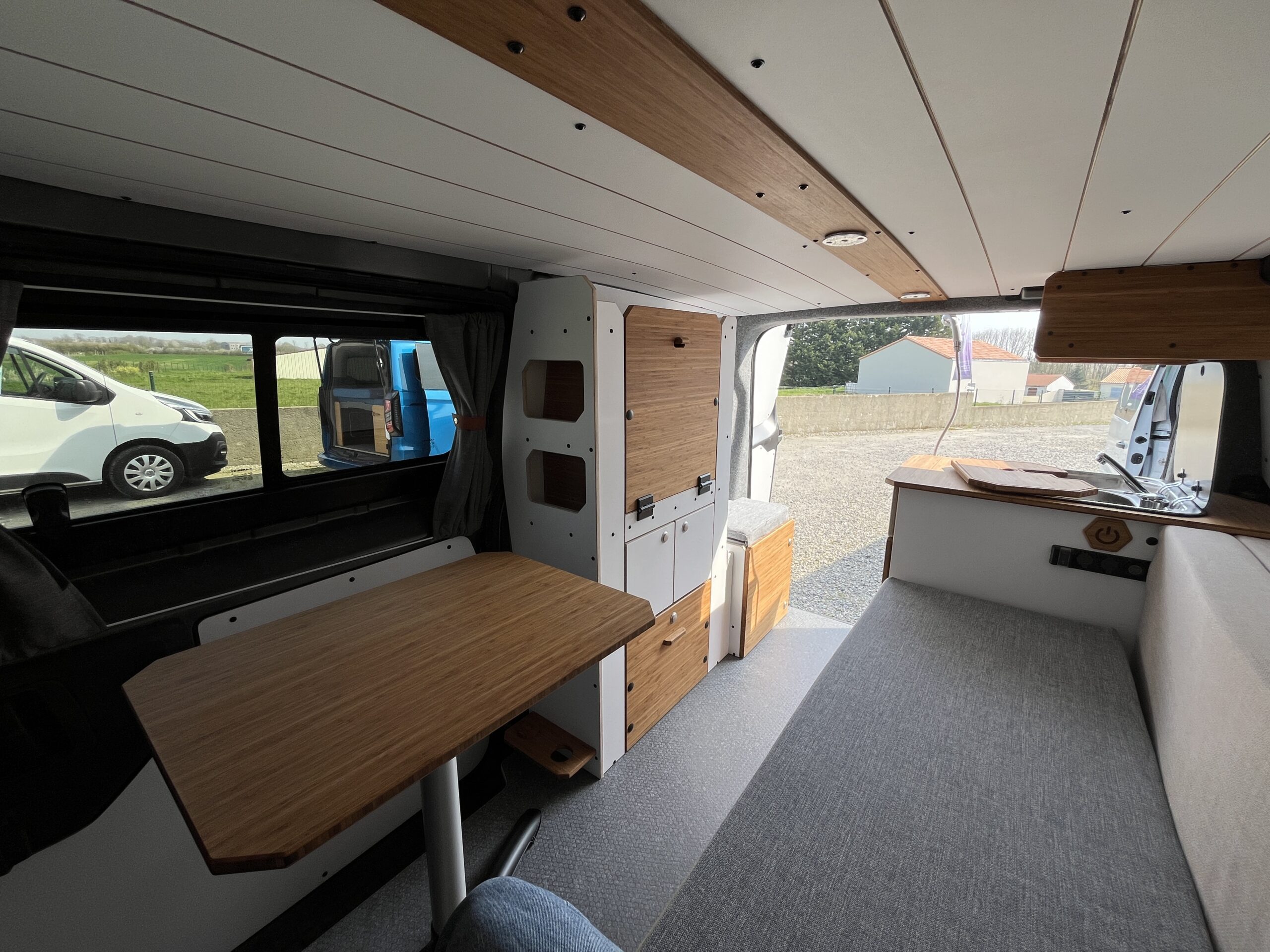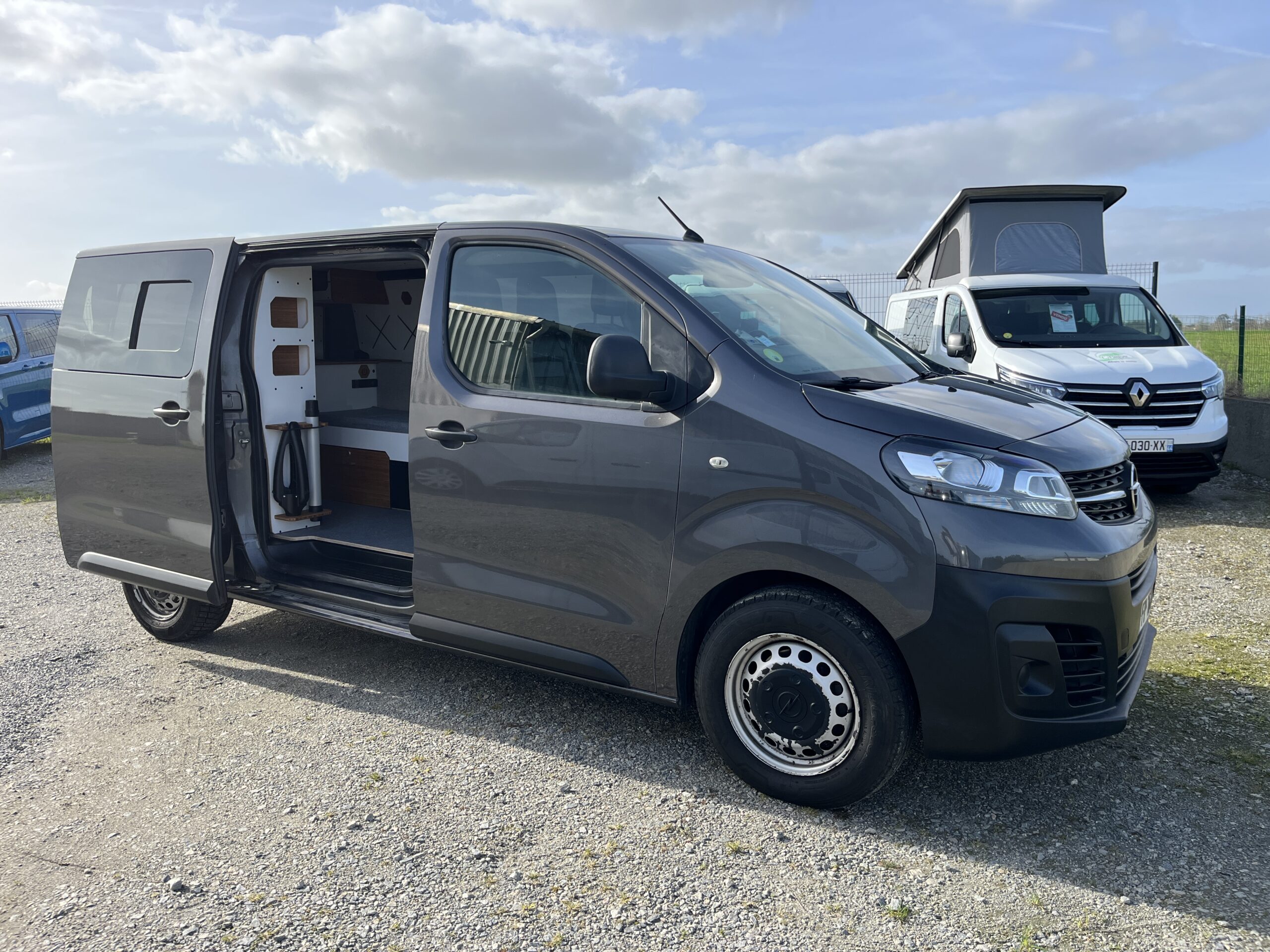 Découvrez notre Opel Vivaro d’occasion équipé du Kit Nord VanMania. Un aménagement amovible et malin, pensé pour l’aventure en toute simplicité. Il comprend un lit 2 places confortable, une cuisine utilisable depuis l’intérieur ou l’extérieur, de nombreux rangements, une table pliante, ainsi que diverses options de confort (chauffage, isolation…). Polyvalent, modulable et efficace, c’est le compagnon idéal pour voyager léger, en solo ou à deux.